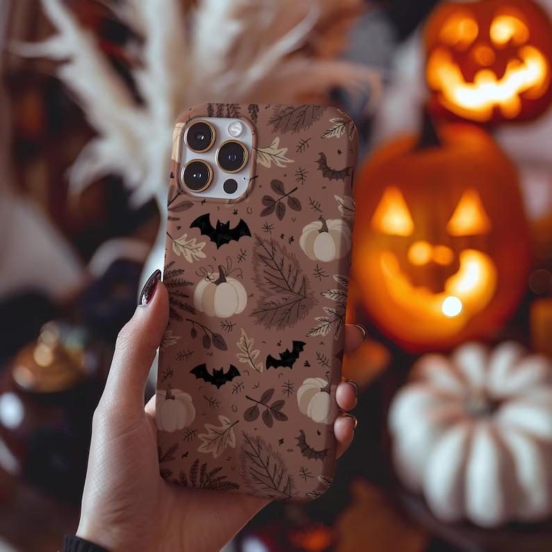 Spooky Pumpkins and Bat Fall Phone Case Halloween Aesthetic for iPhone 16 15 14 13 12 11 Pro Max Plus case 202-86